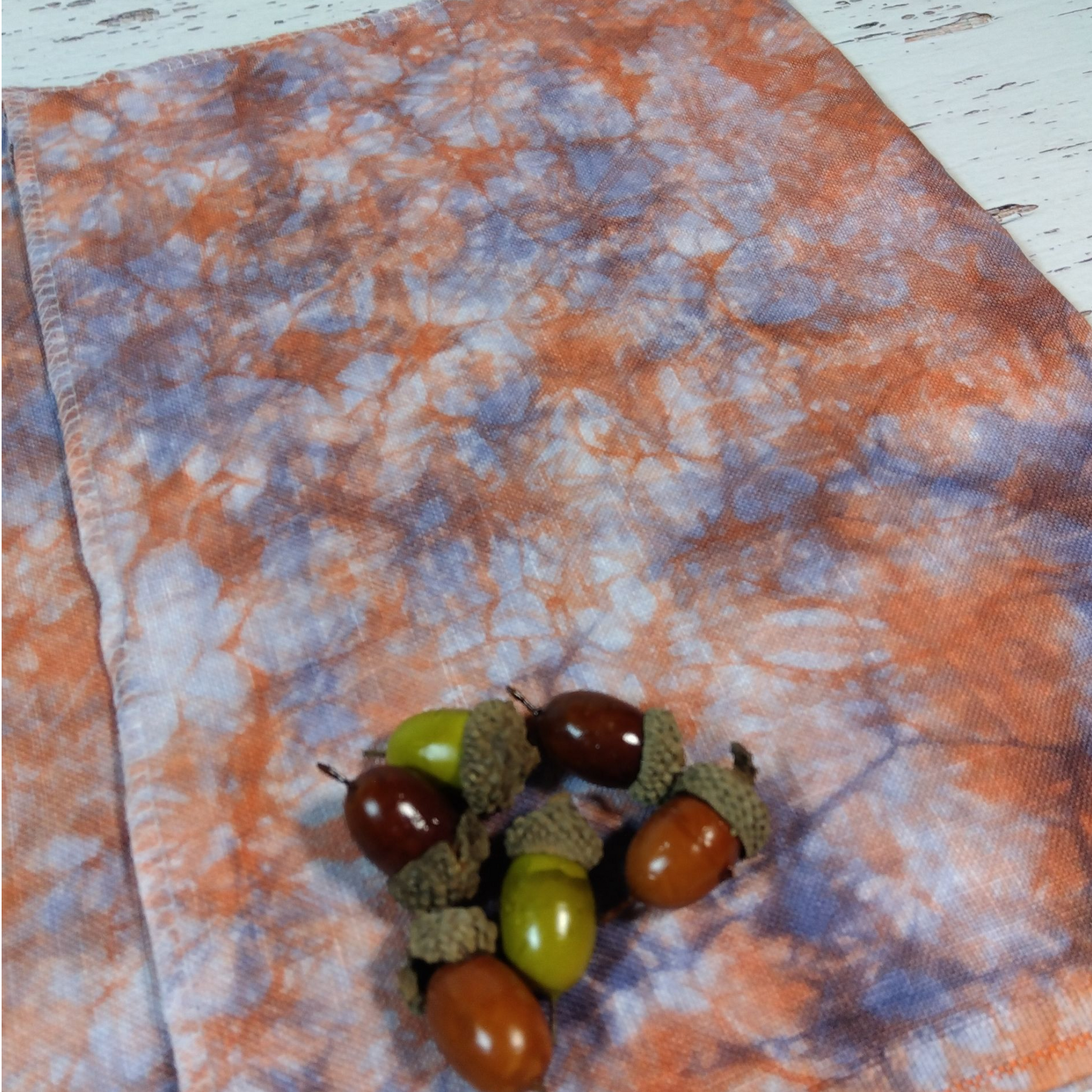 ただし、こちらの「焚き火」など特に濃く染めた布については、 染料の性質上、微量の色落ちが生じる可能性がございます。 刺繍作品の洗濯や長時間の水濡れにはご注意ください。