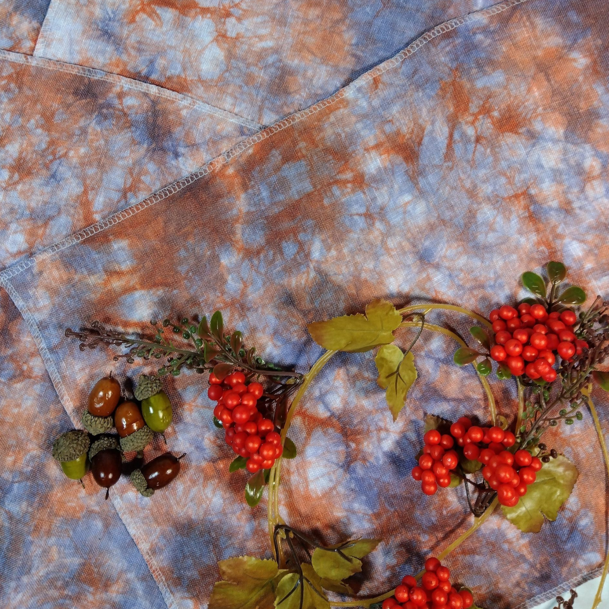 木の葉や木の実、どうぶつたちが寄り添うあたたかな時間をイメージして染めました。